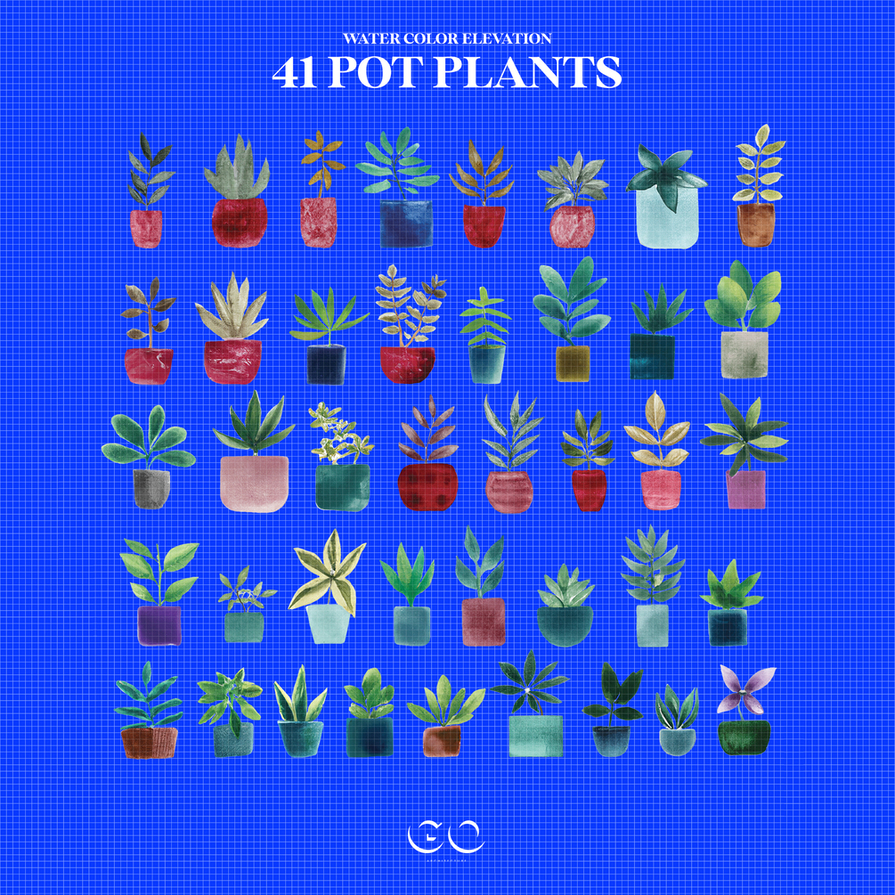 The pot plant watercolor pack includes a set of vibrant and detailed watercolor illustrations of various types of indoor plants in pots. Each plant is carefully depicted with its unique foliage, texture, and color, adding a touch of nature and warmth to any architectural visualization or rendering.